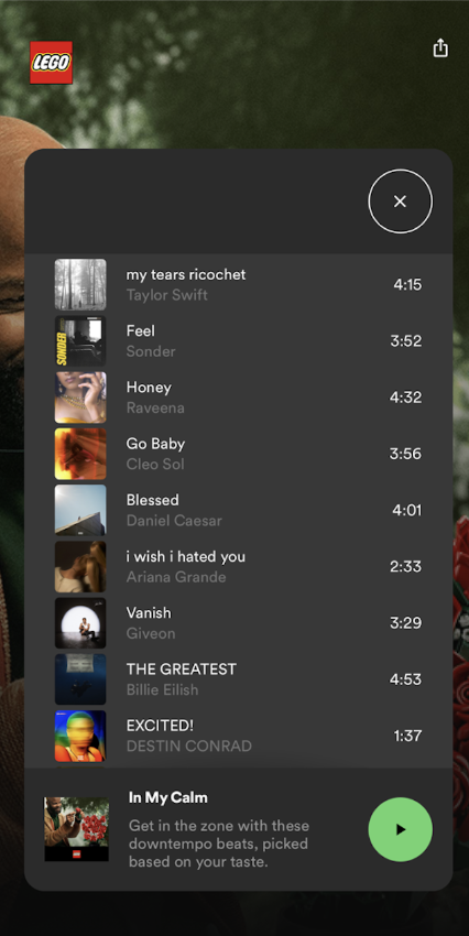 We crafted a multi-format experience leveraging 3D audio, sponsored playlists, and a custom in-app digital journey that linked music, mindfulness, and the art of LEGO building.